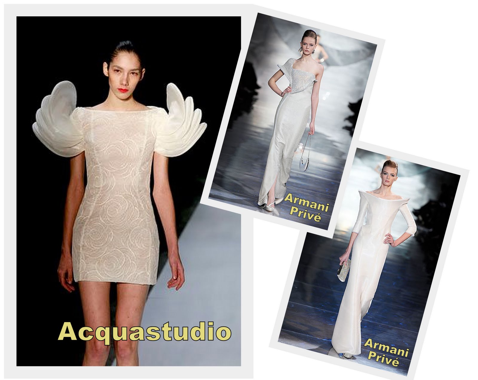 Um dos poucos desfiles vistos que até então, que não são totalmente comerciais….Apesar dos vestidos acima serem totalmente usáveis, já vimos as celebries com esses Armani