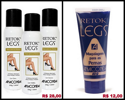 O corretivo para pernas existe em dois tipos em spray e em líquido.  Perfeito para disfarçar vasinhos e os roxos eventuais, OI, vivo roxa das aulas de dança, ou mesmo para dar uma corzinha pra perna… Tem três cores: clara, média e escura. Achei bom, porque é baratinho, num tô podendo desperdiçar  MAC, na perna.