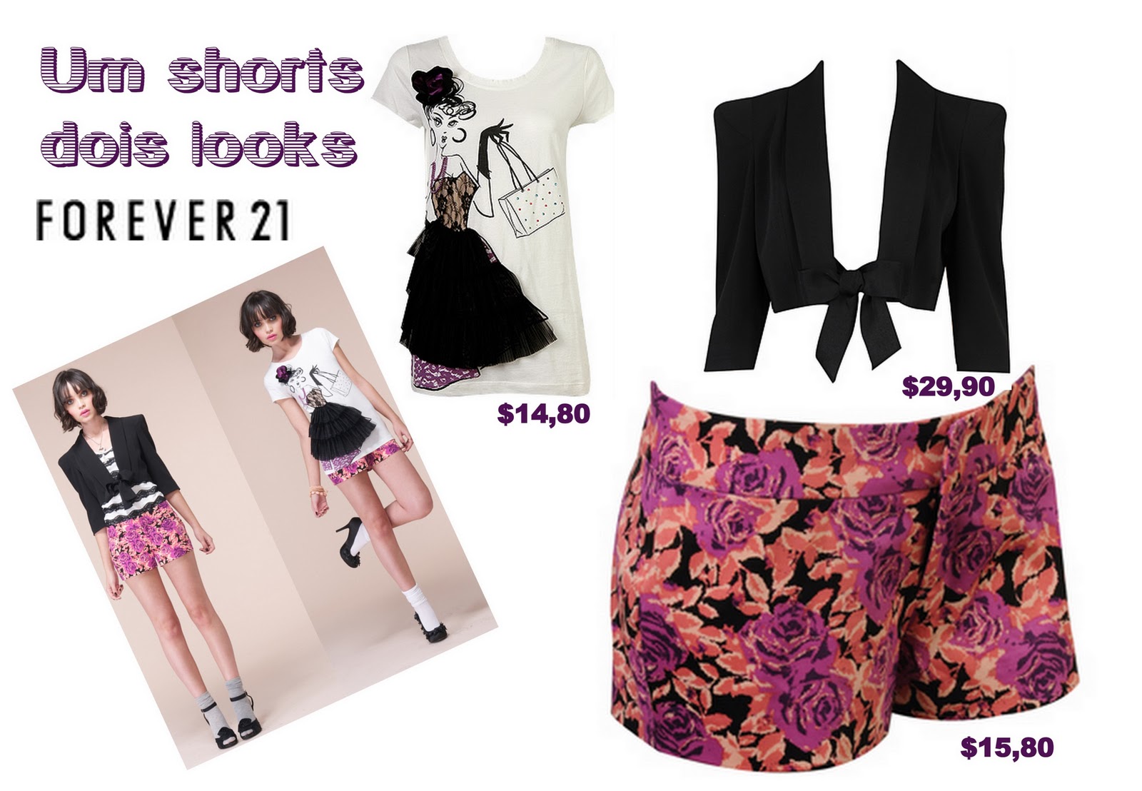 A FOREVER21 montou nas fotos dois looks…, usando uma unica peça..base.