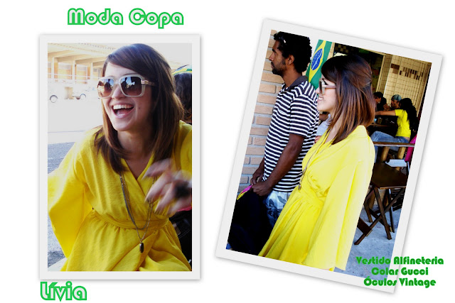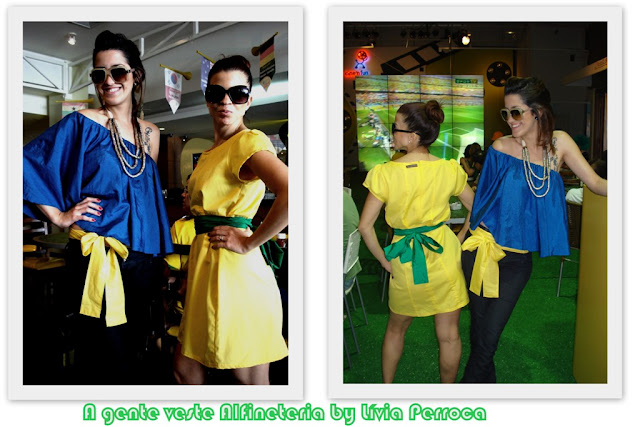 O vestido amarelo (da Alfineteria) ficou a cara da copa com a faixa de tafetá verde, feita especialmente para compor o modelo.