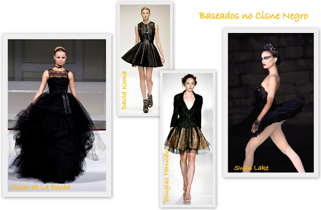 Mais dramáticos e fortes Oscar de La Renta, Douglas Hannant e David Koma me lembraram o Cisne Negro, do Lago dos Cisnes.
