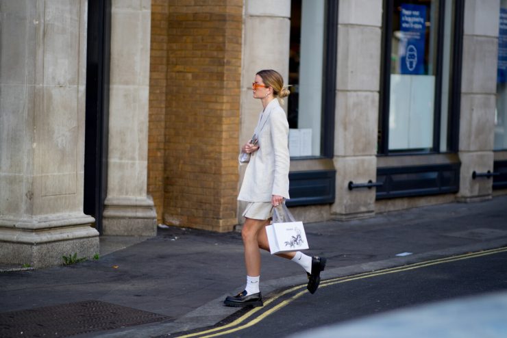 Sabe aquela meia bem branca e grossinha que você tem lá na sua gaveta de meias(que eu particularmente não uso nem para ir na academia)?? Entonnnn, tá na hora de tirar ela do fundo da gaveta porque tá na moda….Cada dia penso, que acho que não sou mais uma fashionista e só uma observadora das modas e das tendências. Digo isso porque raramente testo as tendências grandes e micro tendências, já testei muito, mas agora ando selecionando as peças de uma maneira mais caretinha…Bom, esse é o caso de mais uma modinha que deixarei passar. Até porque essa microtendência gera polêmica e muitas sobrancelhas levantadas. Desde usá-las com sandálias para aproveitar deixando a meia exposta ou até o uso de com chinelos Adidas. O street style das últimas semanas de moda recupera as meias brancas bem esticadinhas…
